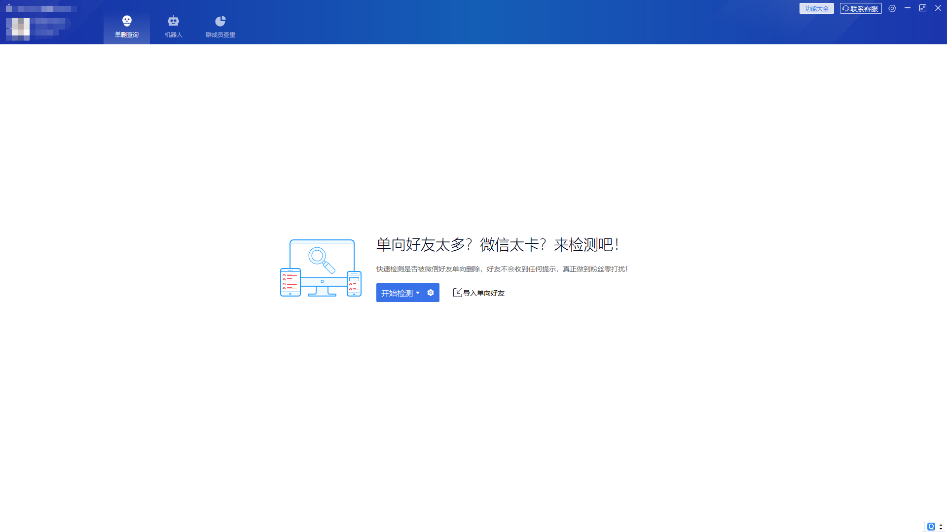 最后在WeTool 界面里点击僵尸粉功能,即可批量检测删除僵尸粉。
