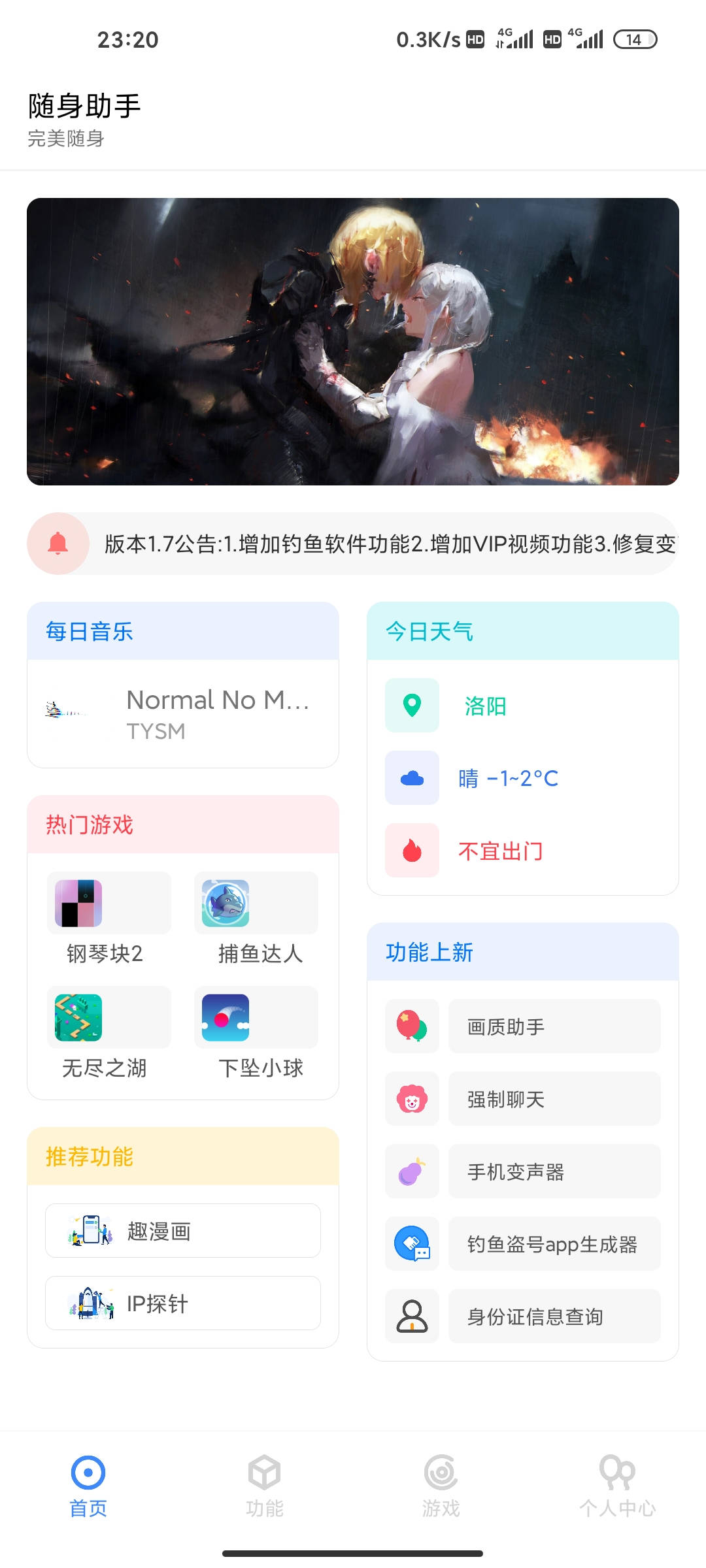 版本1.7公告:1.增加钓鱼软件功能2.增加VIP视频功能3.修复变声器4.增加身份证查询功能5.修复部分bug