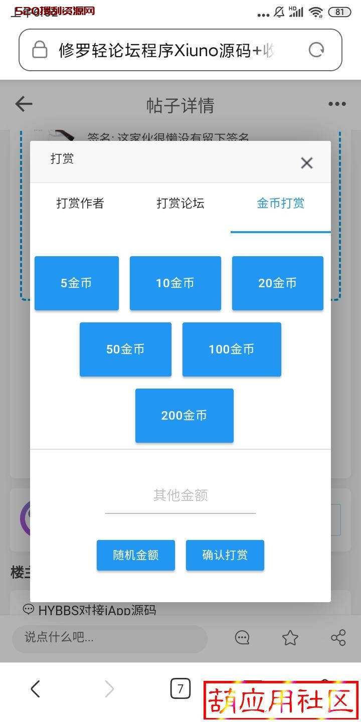 打赏插件,用户可以打赏发帖人,极大的提高用户发帖积极性。当前版本V1.d,该版本仅支持HYBBS2.0及以上版本!